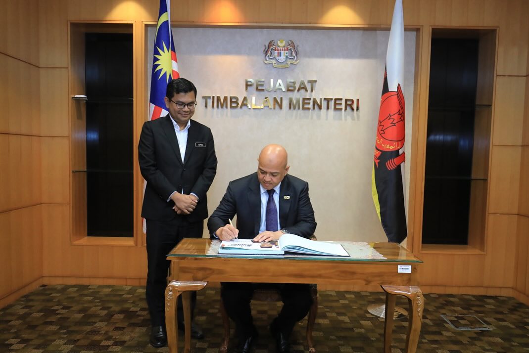 YB Tuan Haji Akmal Nasrullah bin Mohd Nasir, Timbalan Menteri Kementerian Peralihan Tenaga dan Transformasi Air (PETRA) telah menerima kunjungan hormat daripada Yang Mulia Dato Seri Paduka Awang Haji Mohamad Azmi Bin Haji Mohd Hanifah, Timbalan Menteri Tenaga Baru di Pejabat Timbalan Menteri, Menara PETRA, Putrajaya pada 23 Ogos 2024 (Jumaat).